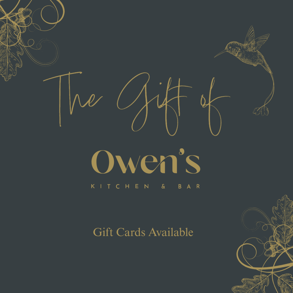 Give the gift of Owen’s! Perfect for any occasion or simply just because, our gift cards are available in any amount that suits you.